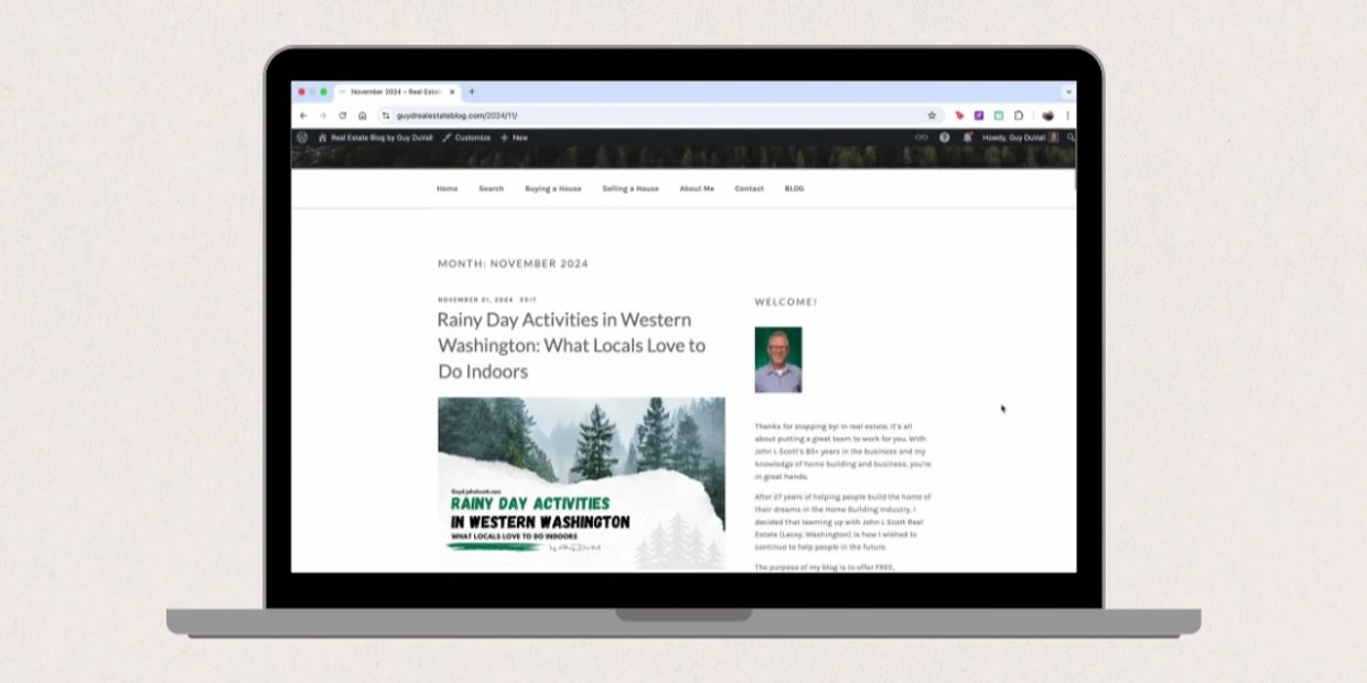 Guy DuVall, a real estate agent focused on the Olympia and Lacey area, wanted to increase his visibility, drive traffic to his listings, and generate more organic leads without relying on paid ads. The challenge was to create an ongoing content strategy that would position him as a local expert, increase search visibility, and attract motivated buyers and sellers.